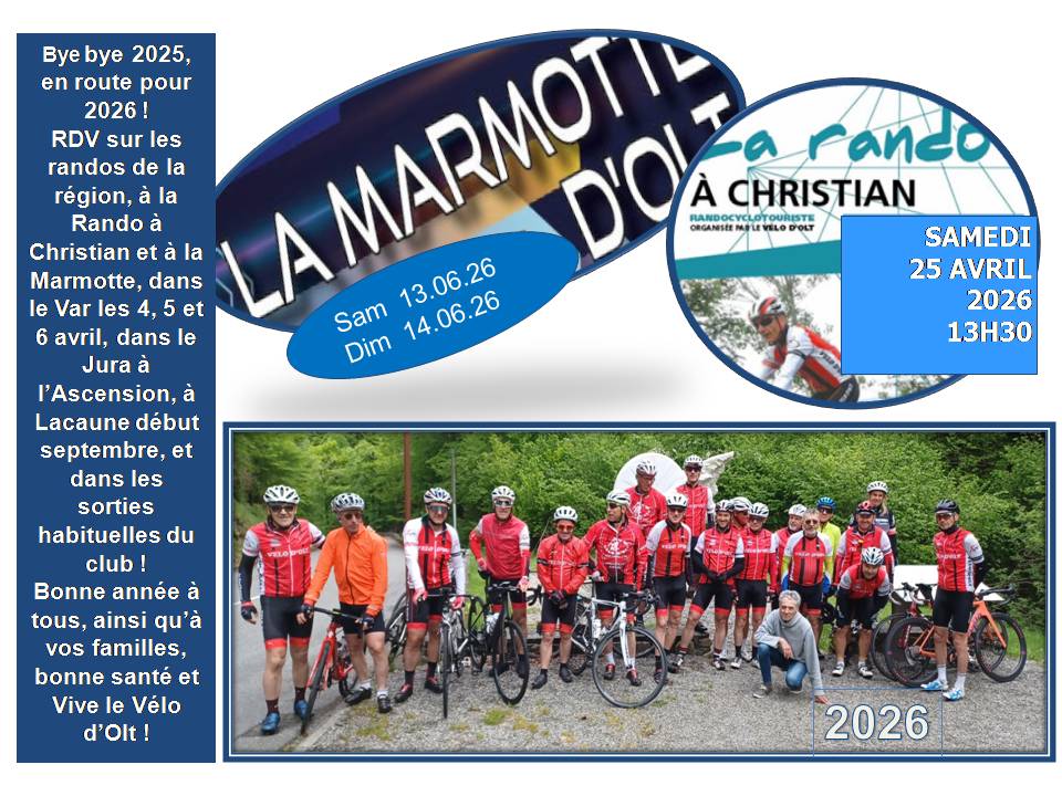 Etaient ensuite évoqués divers projets pour 2026 : La Rando à Christian le 25 avril, la Marmotte d’Olt les 13 et 14 juin, et des séjours potentiels dans le Jura, les Monts de Lacaune, le Mont Ventoux… Ces projets-là nécessitent l’aval du plus grand nombre et donc une analyse approfondie : elle sera faite lors de la prochaine réunion du CA et présentée ensuite à l’ensemble des adhérents.